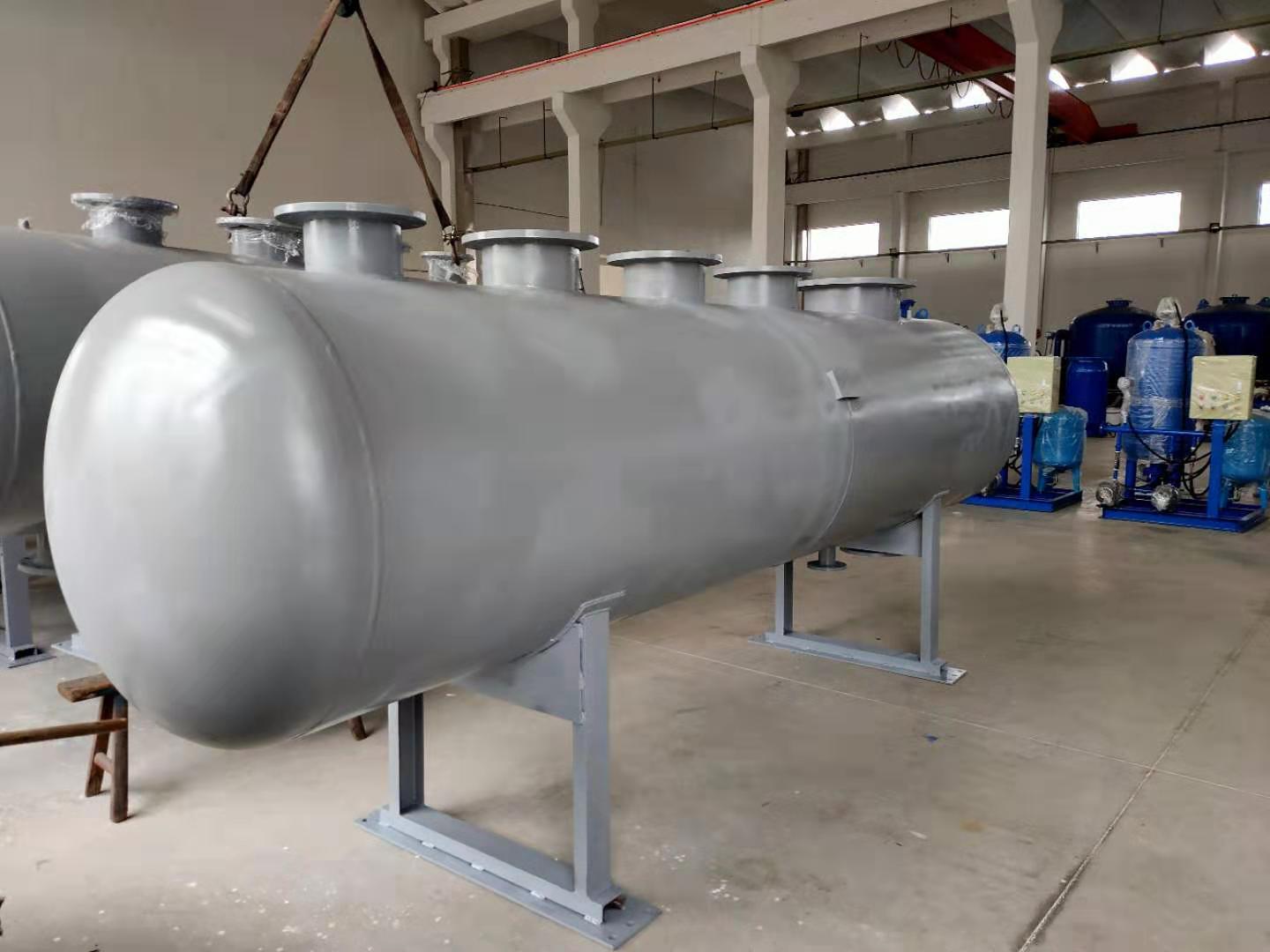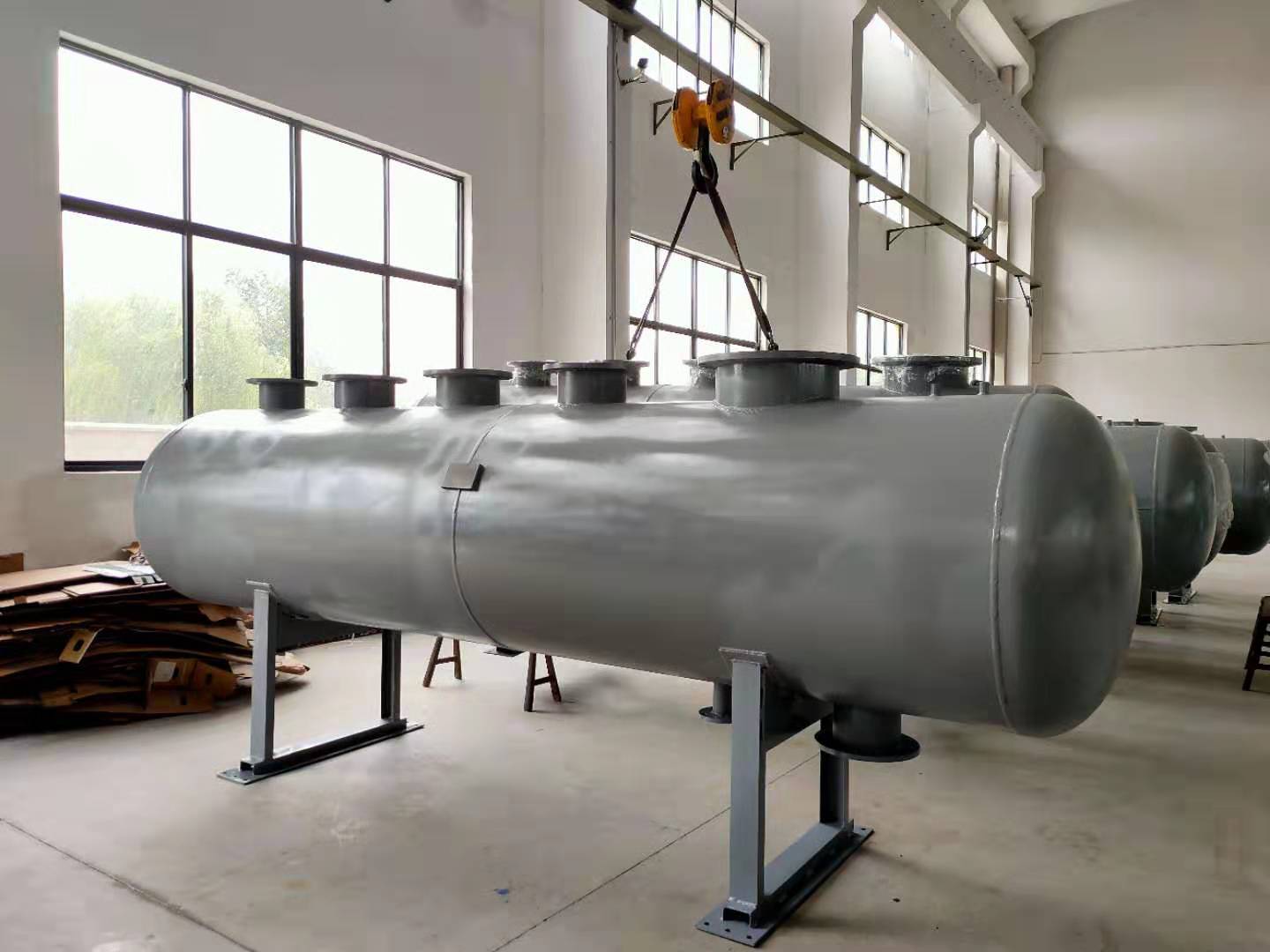 分水器是將一路進水分散為幾路輸出的設備,而集水器是將多路進水匯集起來在一路輸出的設備。結構由主管、分路支管、排污口、排氣口、壓力表、溫度計等組成直徑較大的筒體上裝有人孔或手孔,材質由碳鋼板卷制,或無縫鋼管制作而成,能承受一定壓力,屬于壓力容器類專業(yè)制造,外表面做防腐或保溫處理。集分水器的筒體上根據(jù)需要連接多個進出水管,可將各路水匯集或將一路水分流,筒體上裝有壓力表或溫度計,可方便觀察筒體內水流狀態(tài)。筒體的下端部裝有排污口,用于清洗筒體時的污水流出.其型號多為DN2000-DN1500不等。它一方面將主干管的水按需要進行流量分配,保證各區(qū)域分支環(huán)路的流量滿足負荷需要,同時還要將各分支回路的水流匯集,并且輸入回水主干管中,實現(xiàn)循環(huán)運行。其回水再利用,可達到更節(jié)能的效果,可以同時滿足供熱與制冷的需要,其廣泛應用于鍋爐、中央空調、工業(yè)循環(huán)冷卻水系統(tǒng)、熱水系統(tǒng)。它區(qū)別于熱交換機組、真空脫氣機等其他空調系統(tǒng)里面的產品,分集水器主要用于水路系統(tǒng)。