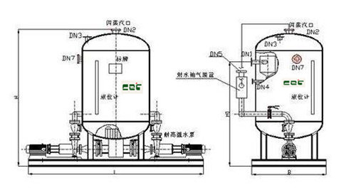 閉式凝結水回收器是由凝結水罐、凝結水泵、汽蝕消除裝置、激波換能器、液位傳感器和控制柜組成。